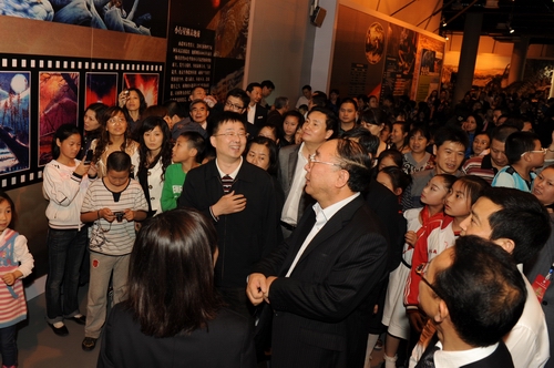 观看重庆科技馆“聆听恐龙的呼唤”大型恐龙展