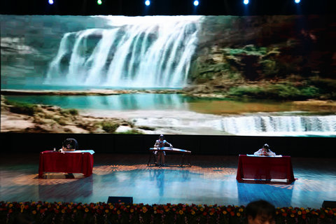 获奖学生代表罗浚洋、马楚瑜、吴梦曦同学现场表演古筝、绘画和书画